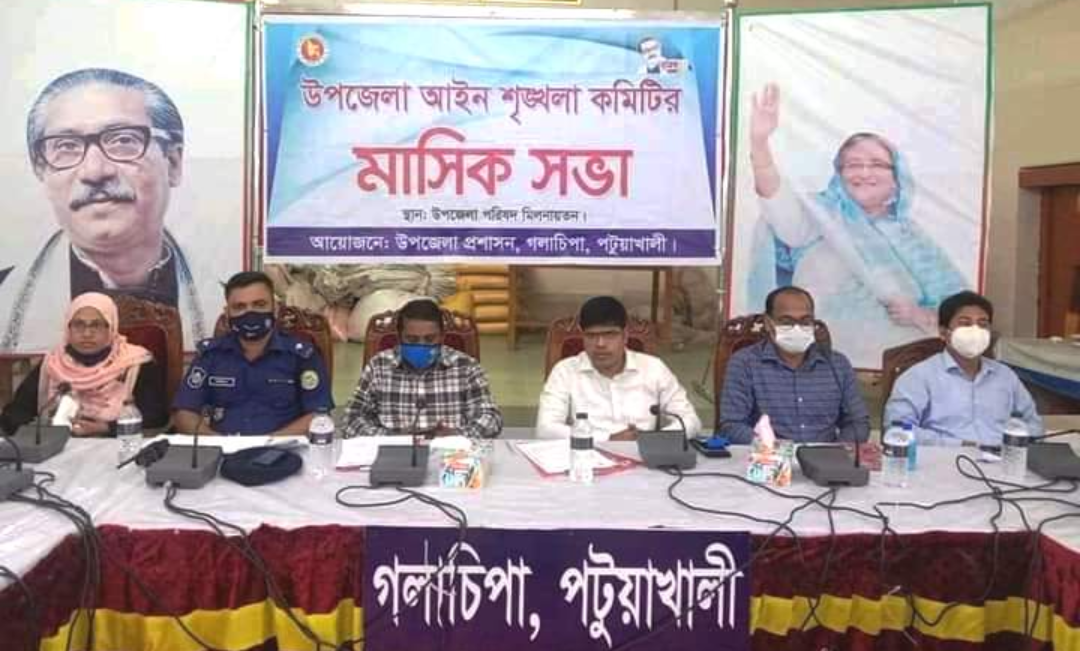সঞ্জিব দাস, গলাচিপা (পটুয়াখালী) প্রতিনিধিঃ গলাচিপায় আইন শৃঙ্খলা মাসিক সভা অনুষ্ঠিত হয়েছে। উপজেলা পরিষদের আয়োজনে বুধবার বেলা ১১টায় উপজেলা পরিষদ মিলনায়তনে উপজেলা নির্বাহী অফিসার আশিষ কুমারের সভাপতিত্বে এ আইন শৃঙ্খলা মাসিক সভা অনুষ্ঠিত হয়।