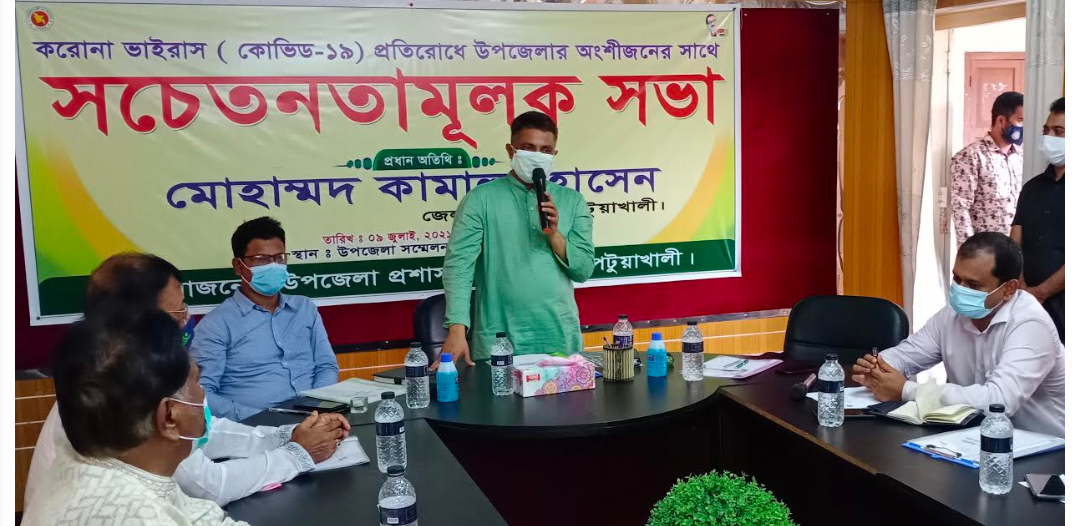 শুক্রবার (৯ জুলাই) বিকালে উপজেলা সম্মেলন কক্ষে উপজেলা নির্বাহী অফিসার আবু হাসনাত মোহাম্মদ শহিদুল হকের সভাপতিত্বে সভায় প্রধান অতিথির বক্তব্য রাখেন পটুয়াখালী জেলা প্রশাসক মোহাম্মদ কামাল হোসেন। বিশেষ অতিথির বক্তব্য রাখেন পুলিশ সুপার মোহাম্মদ শহীদুল্লাহ, অতিরিক্ত জেলা প্রশাসক (সার্বিক) হুমায়ুন কবির।