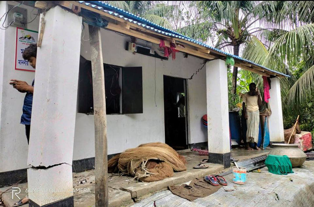 অপর দিকে ঘর নির্মাণের তিন মাসের মাথায় তালতলী উপজেলার অংকুজান পাড়া গ্রামের আবুল কালাম মালের ঘরে ১২ স্থানে ফাটল ধরেছে। ঘরের সামনের পিলার ভেঙ্গে গেছে। ঘর হেলে পরেছে। ঘরের মেঝের পলেস্তারা উঠে গেছে। আবুল কালাম মাল বলেন, ঘর নির্মাণের তিন মাসের মাথায় ঘরের সামনের পিলার ভেঙ্গে গেছে। ঘরে ১২ স্থানে ফাটল ধরেছে। ঘরে বসবাস করা বন্ধ করে দিয়েছি।