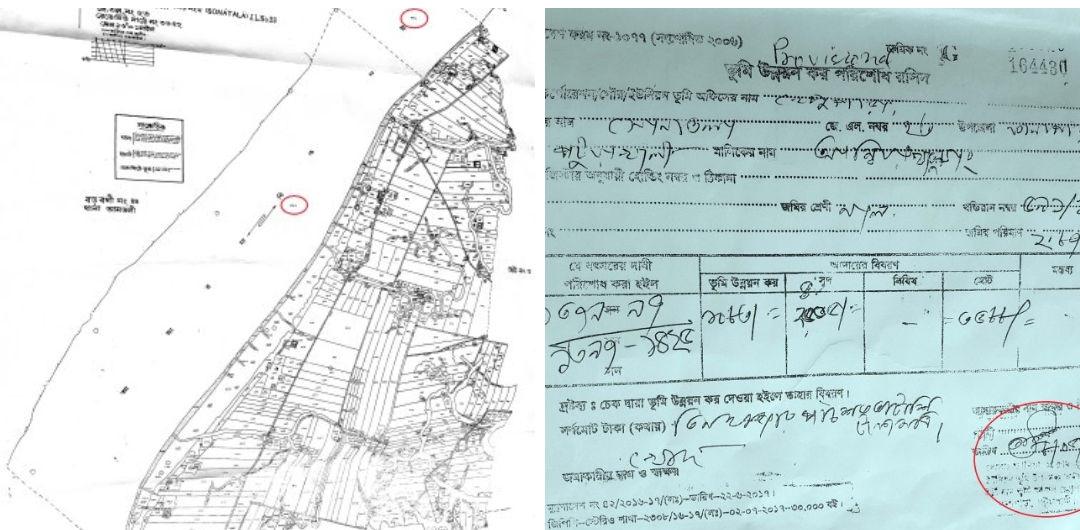 সরকারের নদী শ্রেনীর বিপুল পরিমান এ জমি স্থানীয় ভূমি অফিস ম্যানেজ করে ভুয়া বন্দোবস্ত কেস, এসএ খতিয়ান, দাগ, সহিমোহর পর্চা, নাম সংশোধন, বিএস ও ডিপি খতিয়ান সৃষ্টি করে চক্রটি। যার ৪৬ বছরের ভূমি উন্নয়ন কর একত্রে নিয়ে খাজনা দাখিলা দেয় তহশিলদার এবং যাচাই বাছাই ছাড়াই দু’টি সাব কবলা দলিল রেজিষ্ট্রী করেন সাব রেজিষ্ট্রার। এভাবে রাষ্ট্রীয় ভূ-সম্পত্তি বেহাত হলেও অদ্যবধি পদক্ষেপ নেয়নি সংশ্লিষ্ট কর্তৃপক্ষ।