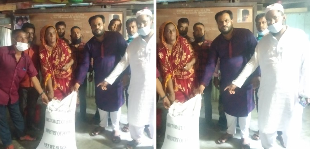 ৯টি ওয়ার্ডের ৪ হাজার ১৮ জনকে দশ কেজি করে চাল বিতরন করেন।