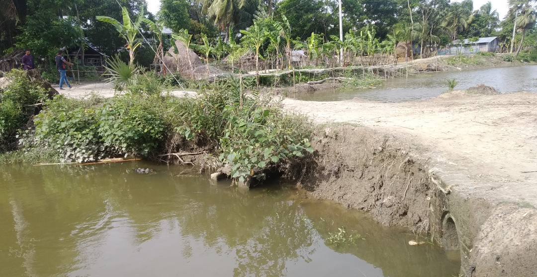 সরেজমিনে গিয়ে দেখা গেছে, চরনজীব স্লুইজ খালটি দীর্ঘ দিন পর্যন্ত খনন হয়নি ৪৭/৪ নং পোল্ডারের এই খালটি পানি উন্নয়ন বোর্ডের ব্যক গোল্ড প্রোগ্রামের অর্থায়নে ১.০৬০ কিলোমিটার খনন করা হয়েছে। ওই খালের পশ্চিমে বেড়িবাঁধ থেকে প্রায় এক’শ মিটার খাল বাঁধ দিয়ে সাবেক এক ইউপি সদস্য প্রভাব খাটিয়ে বাঁধটি না কাটিয়ে মাছ চাষ করছে। অথচ হাজারো মানুষের চলাচলের রাস্তাটি (ক্রস বাঁধিটি) কাটতে মরিয়া হয়ে উঠেছে ঠিকাদারের লোকজন।