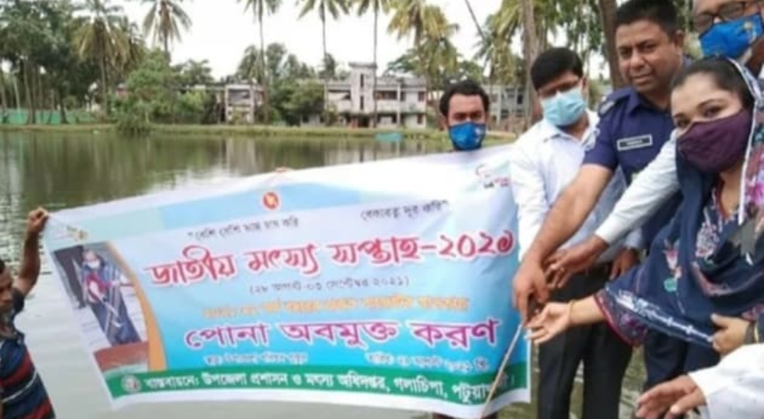 সঞ্জিব দাস, গলাচিপাঃ গলাচিপায় জাতীয় মৎস্য সপ্তাহ ২০২১ উপলক্ষে উপজেলা প্রশাসন ও উপজেলা মৎস্য বিভাগের আয়োজনে ২০২১-২২ অর্থ বছরের রাজস্ব বাজেটের আওতায় বিভিন্ন প্রজাতির পোনা অবমুক্ত করা হয়েছে। ‘বেশি বেশি মাছ চাষ করি, বেকারত্ব দ‚র করি’-এই শ্লোগানকে সামনে রেখে গলাচিপায় জাতীয় মৎস্য সপ্তাহ গতকাল ২৮ আগস্ট শনিবার থেকে ৩ সেপ্টেম্বর পর্যন্ত সাত দিনব্যাপি জাতীয় মৎস্য সপ্তাহের দ্বিতীয় দিনে বিভিন্ন প্রজাতির পোনা অবমুক্ত করা হয়। রবিবার (২৯ আগস্ট) সকালে জাতীয় মৎস্য সপ্তাহ-২০২১ উদযাপন কমিটির আয়োজনে উপজেলা পরিষদ এর পুকুরে, বিভিন্ন মসজিদ, মাদ্রাসা, মন্দির ও সরকারী খাস পুকুরগুলোতে বিভিন্ন প্রজাতির পোনা মাছ অবমুক্ত করেন উপজেলা নির্বাহী অফিসার আশিষ কুমার।