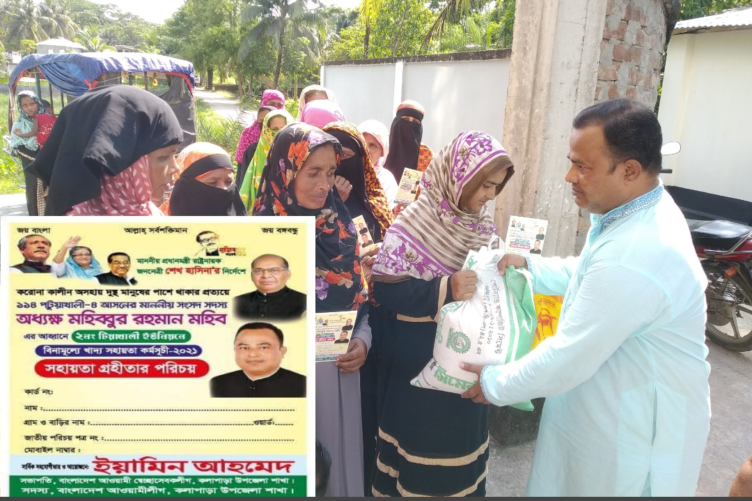 জনপ্রতি ১০ কেজি করে চাউল বিতরণ করেন উপজেলা স্বেচ্ছাসেবক লীগের সভাপতি ও উপজেলা আওয়ামী লীগের সদস্য আসন্ন টিয়াখালী ইউনিয়ন পরিষদের চেয়ারম্যান পদ-প্রার্থী ইয়ামিন আহমেদ।