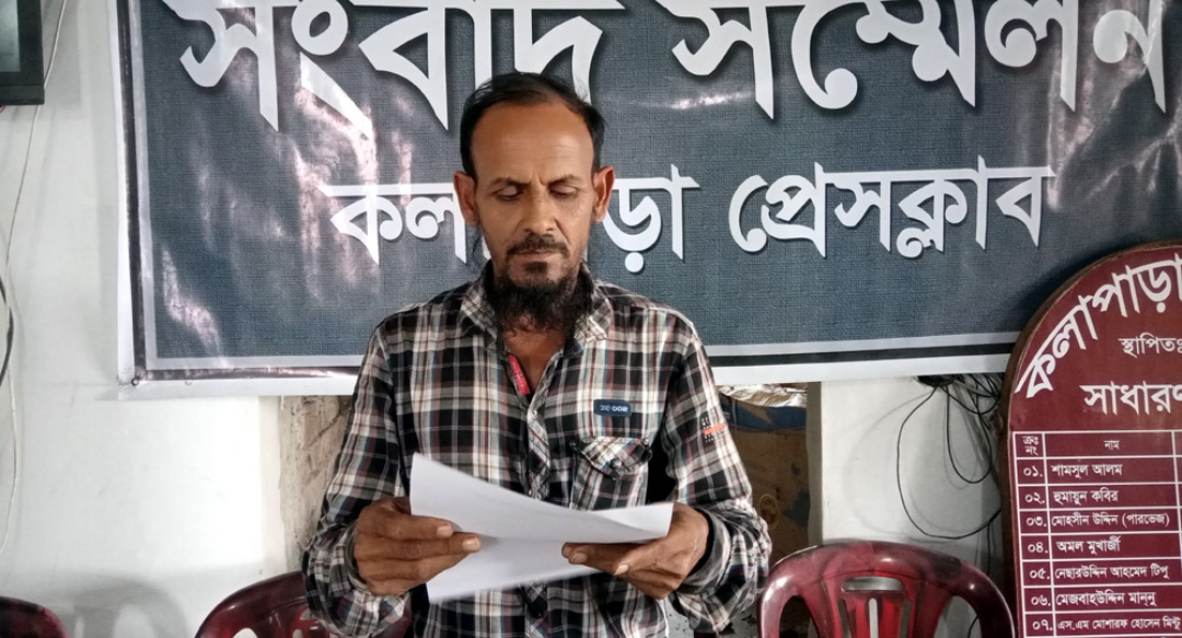 মেজবাহউদ্দিন মাননুঃ শহীদ মুক্তিযোদ্ধা পরিবারের জমি উদ্ধারে প্রশাসনের সহায়তা চেয়ে সংবাদ সম্মেলন করেছেন মোঃ ছলেমান হাওলাদার। উপজেলার বিপিনপুর গ্রামের শহীদ মুক্তিযোদ্ধা আঃ রশিদ হাওলাদারের সন্তান ছলেমান হাওলাদার সোমবার দুপুরে কলাপাড়া প্রেসক্লাবে এ সংবাদ সম্মেলন করেন।