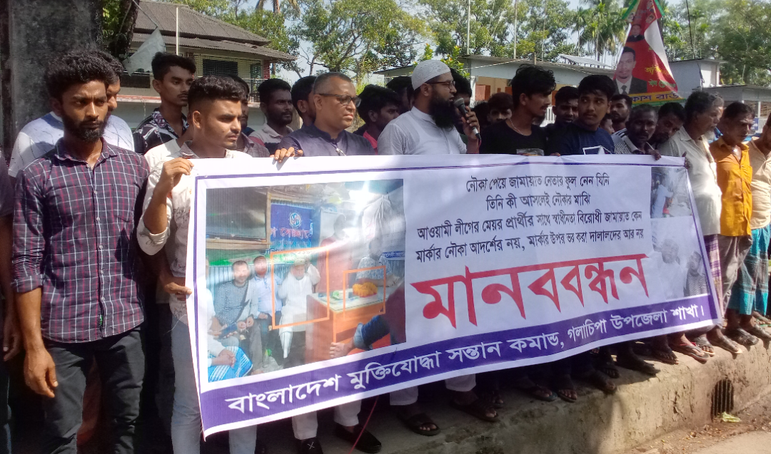 সঞ্জিব দাস, গলাচিপাঃ গলাচিপায় জামাতের সাথে আওয়ামিলীগের মেয়র প্রার্থীর আঁতাতের প্রতিবাদ, বিচার ও নৌকার মনোনয়ন বাতিলের দাবিতে মানববন্ধন ও বিক্ষোভ মিছিল করেছে বাংলাদেশ মুক্তিযোদ্ধা সন্তান কমান্ড।