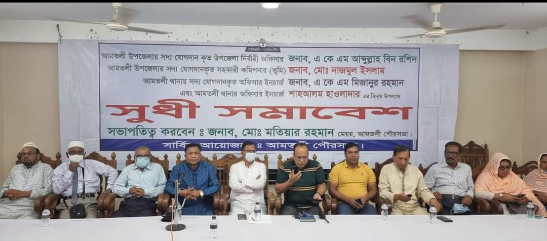 বুধবার (৩ অক্টোবর) সন্ধ্যা ৭ টায় পৌরসভা মিলনায়তনে পৌর মেয়র ও উপজেলা আওয়ামীলীগের সাধারণ সম্পাদক মো. মতিয়ার রহমানের সভাপতিত্বে সুধী সমাবেশে উপস্থিত ছিলেন উপজেলা আওয়ামীলীগ সভাপতি অ্যাড: এম এ কাদের মিয়া, পৌর আ’লীগ সভাপতি ও ভাইস চেয়ারম্যান মোঃ মজিবুর রহমান, উপজেলা মহিলা ভাইস চেয়ারম্যান তামান্না আফরোজ মনি, উপজেলা আ’লীগ সহ-সভাপতি সাবেক পৌর মেয়র মো. নাজমুল আহসান নান্নু, মো. নুরুল ইসলাম মৃধা, উপজেলা আ’লীগ সহ-সভাপতি ও আমতলী সদর ইউপি চেয়ারম্যান মোঃ মোতাহার উদ্দিন মৃধা, আমতলী সরকারী কলেজের ভারপ্রাপ্ত অধ্যক্ষ হোসেন আহমেদ, সাবেক উপজেলা ভাইস চেয়ারম্যান একেএম সামসুদ্দিন আহমেদ সানু, বকুলনেছা মহিলা কলেজের অধ্যক্ষ মো. ফোরকান মিয়া, আমতলী বন্দর ফাজিল মাদ্রাসার অধ্যক্ষ মাওলানা মো. ইউনুস আলী হাওলাদার, আওয়ামীলীগ নেতা ইউপি চেয়ারম্যান বোরহান উদ্দিন আহমেদ মাসুম তালুকদার, আসাদুজ্জামান মিন্টু মল্লিক, সোহেলী পারভীন মালা, রফিকুল ইসলাম রিপন, সাবেক ইউপি চেয়ারম্যান আলহাজ্ব মো. নুরুল ইসলাম মিয়া, চাওড়া ইউনিয়ন আওয়ামীলীেগর সভাপতি আহুরুজ্জামান খান আলমাস, উপজেলা যুবলীগের সিনিয়র সহসভাপতি মো. মাহবুবুর রহমান, ছাত্রলীগ সভাপতি মো. মাহবুবুর রহমান প্রমুখ।