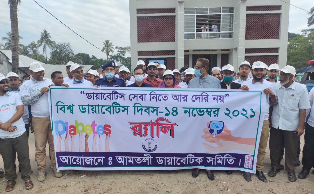 সকাল ১০ টায় আমতলী ডায়াবেটিস সমিতির কার্যালয়ের সামনে থেকে র্যালী শুরু হয়। শহরের প্রধান প্রধান সড়ক প্রদক্ষিণ শেষে র্যালী পুরনায় সমিতির সামনে শেষ হয়। পরে সমিতির মিলনায়তনে ডায়াবেটিস সমিতির পরিচালক ডাঃ রাসাবুল আলমের সভাপতিত্বে আলোচনা সভায় প্রধান অতিথি ছিলেন ইউএনও কেএম আব্দুল্লাহ বিন রশিদ। বিশেষ অতিথি ছিলেন ওসি একেএম মিজানুর রহমান, নারী ভাইস চেয়ারম্যান তামান্না আফরোজ মনি।