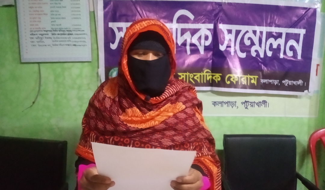 আপন নিউজ অফিসঃ কলাপাড়ায় পূর্ব শত্রুতার জেরে নিজ ঘরে আগুন দিয়ে অপরকে ঘায়েল করার ষড়যন্ত্রের প্রতিবাদে উপজেলার নীলগঞ্জ ইউনিয়নের পূর্বসোনাতলা গ্রামের ভুক্তভোগী মোসা: মাহিনুর বেগম সংবাদ সম্মেলন করেছেন। শনিবার সকাল ১১টার দিকে কলাপাড়া সাংবাদিক ফোরাম কার্যালয়ে এ সংবাদ সম্মেলন অনুষ্ঠিত হয়।
