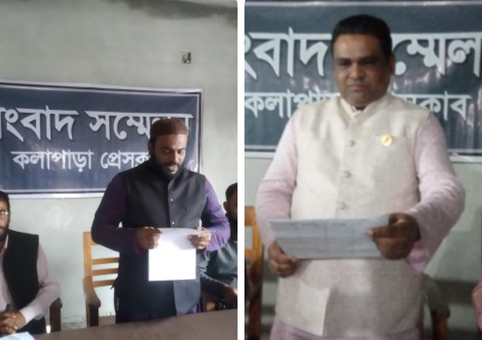 চঞ্চল সাহা, আপন নিউজ অফিসঃ কলাপাড়ায় ২৬ ডিসেম্বর অনুষ্ঠিতব্য ইউনিয়ন পরিষদ নির্বাচনকে কেন্দ্র করে টিয়াখালী ইউনিয়নের দুই চেয়ারম্যান প্রার্থী একে অপরকে দোষারোপ করে পৃথক দু’টি সংবাদ সন্মেলন করেছে। স্থানীয় প্রেসক্লাব মিলনায়তনে বৃহস্পতিবার বেলা ১১ টার বর্তমান চেয়ারম্যান ও আওয়ামীলীগ মনোনীত নৌকা প্রতীকের প্রার্থী সৈয়দ মশিউর রহমান শিমু এ সংবাদ সন্মেলন করেন। অপরদিকে, বুধবার সন্ধ্যা ৭ টার দিকে একই প্রেসক্লাবে বাংলাদেশ ছাত্রলীগ কলাপাড়া উপজেলা শাখার সাবেক সভাপতি ও টিয়াখালী ইউনিয়ন পরিষদের সাবেক চেয়ারম্যান আনারস প্রতীকের স্বতন্ত্র প্রার্থী মো.মাহমুদুল হাসান সুজন মোল্লা অপর একটি সংবাদ সন্মেলন করেছেন।