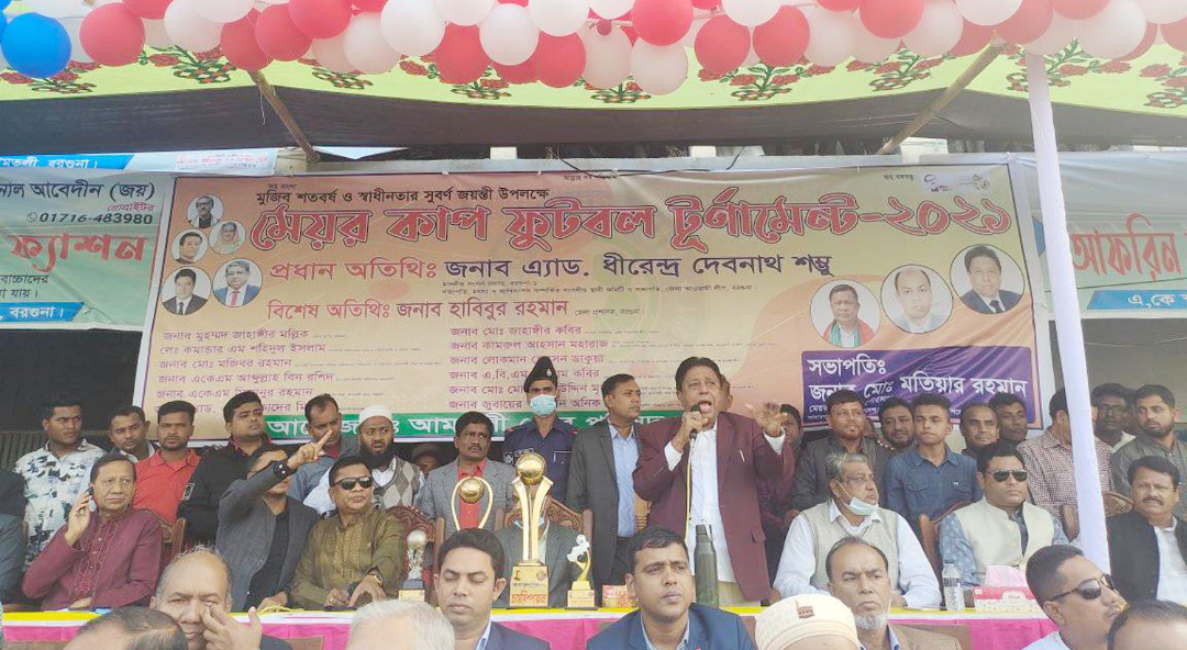 জানাগেছে, জাতির পিতা বঙ্গবন্ধু শেখ মজিবুর রহমানের মুজিব শতবর্ষ ও স্বাধীনতার সুবর্ণ জয়ন্ত্রী উপলক্ষে আমতলী পৌর মেয়র মতিয়ার রহমান মেয়র কাপ ফুটবল টুর্নামেন্টের আয়োজন করেন। শনিবার ওই টুর্নামেন্টের ফাইনাল খেলা আমতলী একে সরকারী মাধ্যমিক বিদ্যালয় মাঠে অনুষ্ঠিত হয়। প্রধান অতিথি মৎস্য ও প্রাণী সম্পদ মন্ত্রনালয়ের সম্পর্কিত স্থায়ী কমিটির সভাপতি অ্যাডভোকেট ধীরেন্দ্র দেবনাথ শম্ভু এমপি এ খেলার উদ্বোধন করেন।