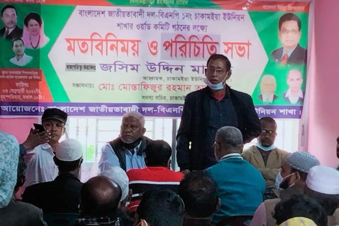 মতবিনিময় ও পরিচিতি সভা সভাপতিত্ব করেন চাকামইয়া ইউনিয়ন বিএনপির আহ্বায়ক জসিম উদ্দিন মানিক।