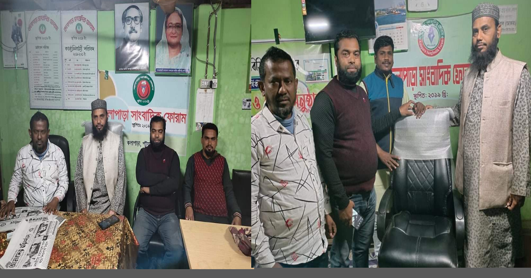 রবিবার সন্ধ্যায় তিনি কলাপাড়া সাংবাদিক ফোরাম কার্যালয় নবনির্বাচিত কমিটির সাথে শুভেচ্ছা ও মতবিনিময় শেষে একটি অসিসিয়াল চেয়ার প্রদান করেন তিনি।