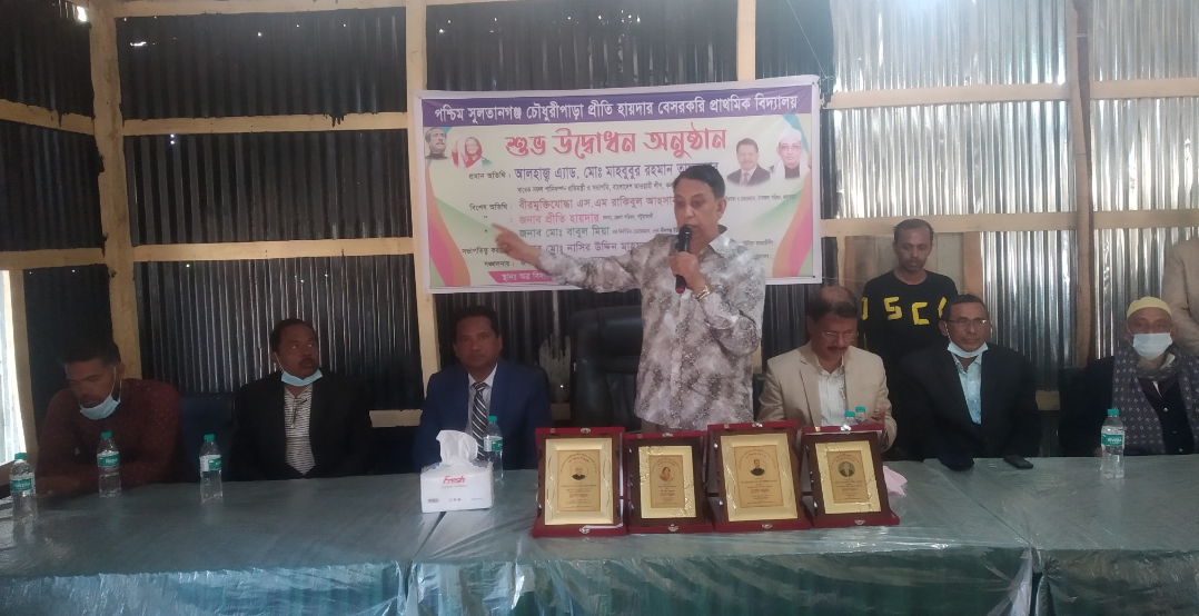 রোববার (১৩ফেব্রুয়ারি) বেলা ১১ টায় পশ্চিম সুলতানগঞ্জ চৌধুরীপাড়া প্রীতি হায়দার বেসরকারি প্রাথমিক বিদ্যালয় ফিতা কেটে আনুষ্ঠানিকভাবে শুভ উদ্বোধন করা হয়। উদ্বোধন শেষে বিদ্যালয় প্রাঙ্গণে আলোচনা সভা ও আগত প্রধান অতিথি ও বিশেষ অতিথিদের মাঝে ক্রেস্ট প্রদান করা হয়।