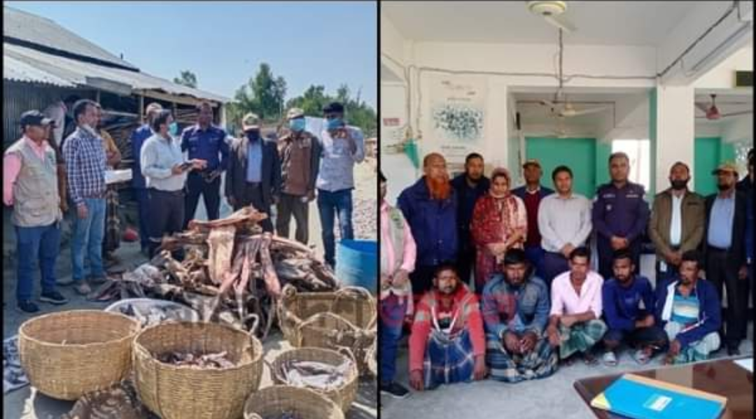 দন্ডপ্রাপ্ত শুটকি ব্যবসায়ীরা হলো মো.জুবায়ের হোসেন, মো.রুবেল মো.জহিরুল ইসলাম, মো. মোশারেফ হোসেন ও মো.রুবেল হাওলাদার। এদের কাছ থেকে তিন মন পিতম্বরী প্রজাতির ও এক মন কালো হাঙ্গার জব্দ করা হয়। পরে হাঙ্গর গুলোকে মাটি চাঁপা দেয়া হয়। মৎস্য ব্যবসায়ীদের বাড়ী আলীপুর এলাকার বিভিন্ন গ্রামে। এরা সাগরে মাছ শিকারের পাশাপাশি শুটকি করে বিক্রি করে থাকে। ভ্রাম্যমান আদালত পরিচালনা করেন নিবার্হী ম্যাজিষ্ট্রেট ও উপজেলা সহকারী কমিশনার (ভূমি) জগৎবন্ধু মন্ডল।