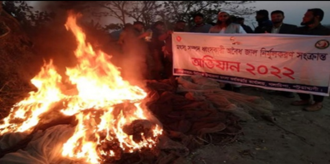 পরে রাত ১১ টার দিকে উপজেলা নির্বাহী ম্যাজিট্রেট ও নির্বাহী কর্মকর্তা আশিষ কুমার এর নির্দেশনায় গাজীপুর নলুয়াবাগী নদীর পারে জনসাধারণের সম্মুখে জব্দকৃত জাল গুলো আগুনে পুড়িয়ে ধ্বংস করা হয়।