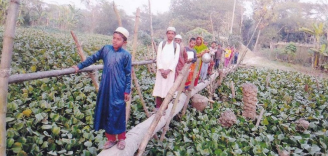 খালের উপর একটি ব্রীজ না থাকায় দূর্ভোগের চরমে শিক্ষার্থী ও এলাকার মানুষ।