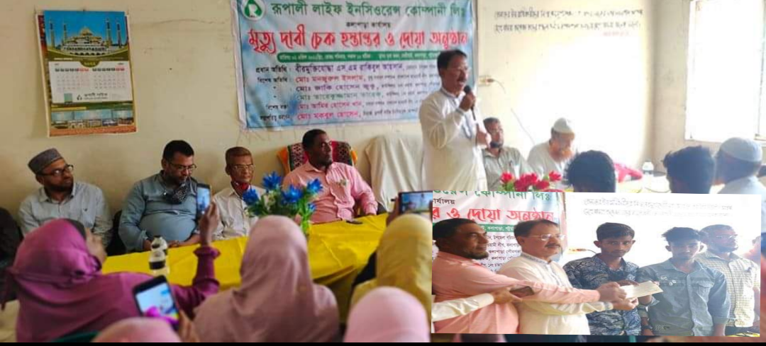 আপন নিউজ অফিসঃ কলাপাড়ায় রূপালী লাইফ ইনসিওরেন্স কোম্পানি লিং এর মৃত্যু দাবী চেক হস্তান্তর ও দোয়া অনুষ্ঠান অনুষ্ঠিত হয়েছে।