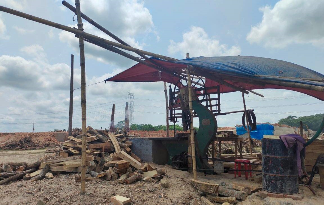 রবিবার ১৭ এপ্রিল সরেজমিনে গিয়ে দেখা গেছে, রায়বালা এলাকায় এডিবি, মৃধা, ফাইভ স্টার, চন্দ্রা এলাকায় এমকেএস, এইচআরটি, এসএসবি ও মহিষডাঙ্গা গ্রামে এমসিকে নামের ৭ টি ড্রাম চিমনী ইটভাটার মালিকরা আইন ভেঙ্গে ভাটায় ভেতরে করাতকল স্থাপন করে কাঠ চেরাই করছে। ইটভাটায় কালো ধোয়ায় এলাকা গাছপালা কালচে হয়ে গেছে। গ্রামগুলোতে মানুষের বসবাসের অনুযোযোগী হয়ে পরেছে। দেদারছে করাতকলে কাঠ কেটে ই্টভাটায় পোড়াচ্ছে।