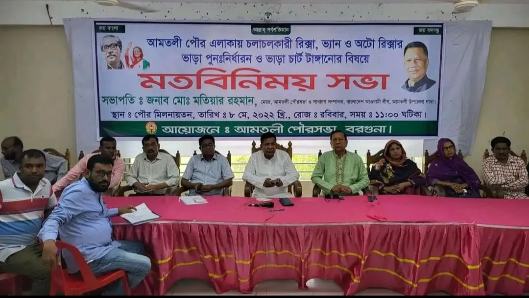 জানাগেছে, গত একমাস ধরে পৌর শহরের চলাচলকারী ব্যাটারী চালিত অটোরিক্সা চালকরা ভাড়া নিয়ে বেশ নৈরাজ্য চালিয়ে আসছে। অটোরিক্সা চালকদের এমন নৈরাজ্যের প্রতিবাদ করায় বেশ কয়েকজন লাঞ্ছিতের শিকার হয়। রিক্সা চালকদের এমন নৈরাজ্য নজরে আসে উপজেলা আওয়ামীলীগ সাধারণ সম্পাদক পৌর মেয়র মোঃ মতিয়ার রহমানের। অটোরিক্সার ভাড়া নির্ধারণ ও নৈরাজ্য বন্ধে রবিবার দুপুরে মেয়র মতিয়ার রহমানের উদ্যোগে পৌরসভা মিলনায়তনে সুশীল ব্যক্তিবর্গ নিয়ে মতবিনিময় সভা আহবান করেন তিনি। মেয়র মতিয়ার রহমানের সভাপতিত্বে সভায় প্রধান অতিথি ছিলেন উপজেলা পরিষদ চেয়ারম্যান (ভারপ্রাপ্ত) মোঃ মজিবুর রহমান। বিশেষ অতিথি ছিলেন অধ্যাপক মোঃ আনোয়ার হোসেন আকন, আমতলী প্রেসক্লাব সভাপতি এ্যাড, শাহাবুদ্দিন পান্না, সাংবাদিক রেজাউল করিম বাদল, হিন্দু বৌদ্ধ ঐক্য পরিষদ সভাপতি অশোক কুমার মজুমদার, পৌরসভার নির্বাহী কর্মকর্তা রফিকুল ইসলাম ও প্রশাসনিক কর্মকর্তা মোঃ মামুনুর রশিদ। বক্তব্য রাখেন কাউন্সিলর মোঃ হাবিবুর রহমান, মোঃ আবুল বাশার রুমি, মোয়াজ্জেম হোসেন ফরহাদ, নারী কাউন্সিলর ফরিদা ইয়াসমিন, লিপি আক্তার ও মাকসুদা বেগম। সভায় পৌর শহরের চলাচলকারী অটো রিক্সার ভাড়া নির্ধারন করে শহরের বিভিন্ন স্থানে চার্ট টানিয়ে দেয়ার সিদ্ধান্ত হয়।