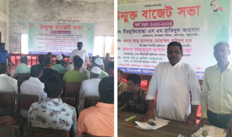 আপন নিউজ অফিসঃ কলাপাড়ায় টিয়াখালী ইউনিয়ন পরিষদের ২০২২-২০২৩ অর্থ বছরের উম্মুক্ত বাজেট সভা করা হয়েছে। সোমবার টিয়াখালী ইউনিয়ন পরিষদের মিলনায়তন কক্ষে এ উম্মুক্ত বাজেট সভা করা হয়।