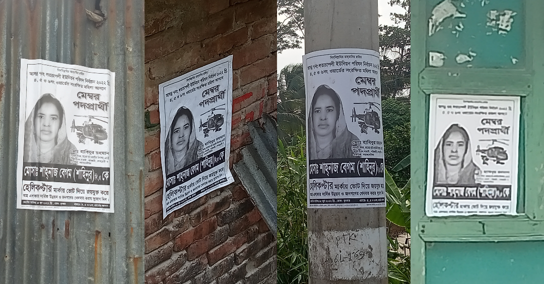 এ বিষয়ে জানতে মহিলা মেম্বার প্রার্থী শাহিনুরকে ফোন দিলে তিনি অস্বীকার করে বলেন, ‘ওগুলো আমরা লাগাইনি, আমার প্রতিপক্ষরা হয়তো লাগিয়েছে।’ প্রতিপক্ষরা পোস্টার কীভাবে পেলো এবং কেনোই বা এমন করবেন জানতে চাইলে তিনি এর কোনো সদুত্তর দিতে পারেননি।