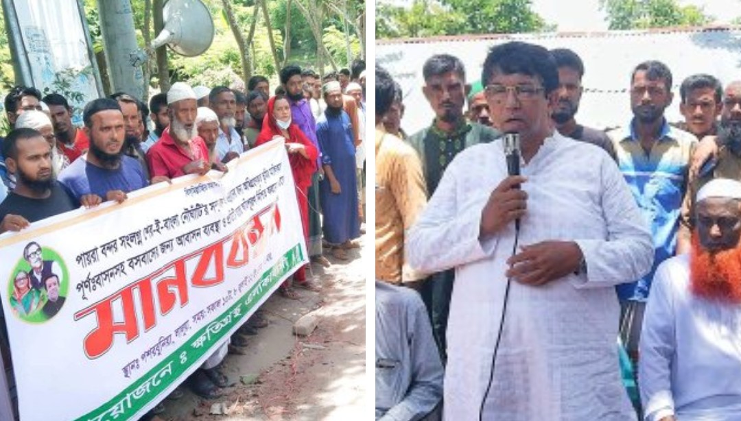 শুক্রবার বেলা ১১টার দিকে এ মানববন্ধনে এলাকাবাসী তাদের প্রতিটি স্থাপনা তালিকাভূক্ত করার দাবি করেন।