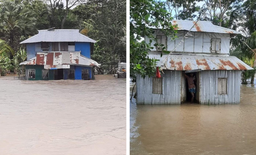 ইতোপূর্বে নির্মাণ করা রিং বেড়িবাঁধ ভেসে যাওয়ায় এমন দুরাবস্থায় পড়েছেন শত শত পরিবার। এসব পরিবারের চুলা পর্যন্ত ডুবে গেছে। রান্না পর্যন্ত বন্ধ রয়েছে। ইতোমধ্যে অর্ধশতাধিক পরিবার অপর একটি বেড়িবাঁধের স্লোপে, বাঁধের উপরে আশ্রয় নিয়েছে।