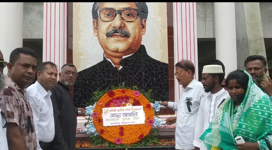 আপন নিউজ অফিস।। কলাপাড়ায় শোকের মাস আগষ্ট উপলক্ষে উপজেলা ও পৌর কৃষক লীগ বঙ্গবন্ধুর প্রতিকৃতিতে শ্রদ্ধা নিবেদন করেছেন।