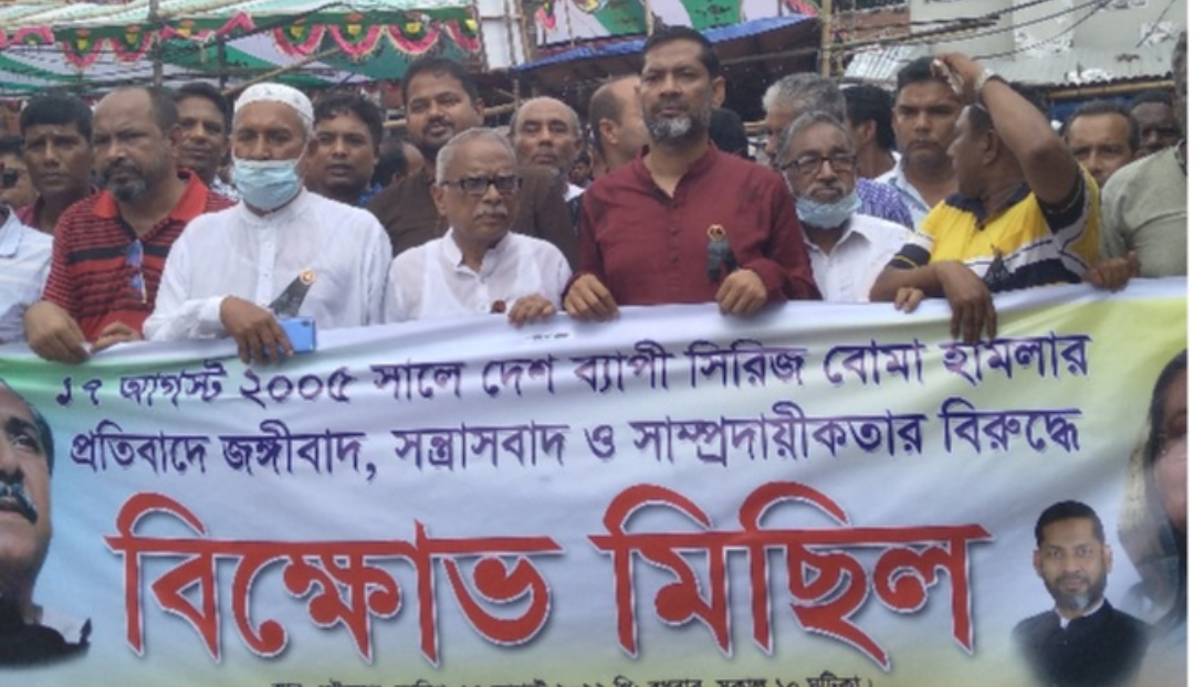 সঞ্জিব দাস, গলাচিপা প্রতিনিধি।। ১৭ আগস্ট ২০০৫ সালে দেশব্যাপী সিরিজ বোমা হামলার প্রতিবাদে জঙ্গীবাদ, সন্ত্রাসবাদ ও সাম্প্রদায়ীকতার বিরুদ্ধে গলাচিপায় উপজেলা মৎস্যজীবী লীগের আয়োজনে এক প্রতিবাদ সভা অনুষ্ঠিত হয়েছে। বুধবার সকাল ১০টায় পৌরমঞ্চে উপজেলা মৎস্যজীবী লীগের সভাপতি মো. ধলা মিয়া মাঝির সভাপতিত্বে ও সাধারণ সম্পাদক মাহমুদ হাসান সাবুর সঞ্চালনায় এ প্রতিবাদ সভা অনুষ্ঠিত হয়। প্রতিবাদ সভা শেষে পৌরমঞ্চ চত্বর থেকে একটি বিক্ষোভ মিছিল বের করা হয়। মিছিলটি পৌর শহরের সড়কগুলো প্রদক্ষিণ করে উপজেলা আওয়ামী লীগ কার্যালয়ের সামনে এসে শেষ হয়।