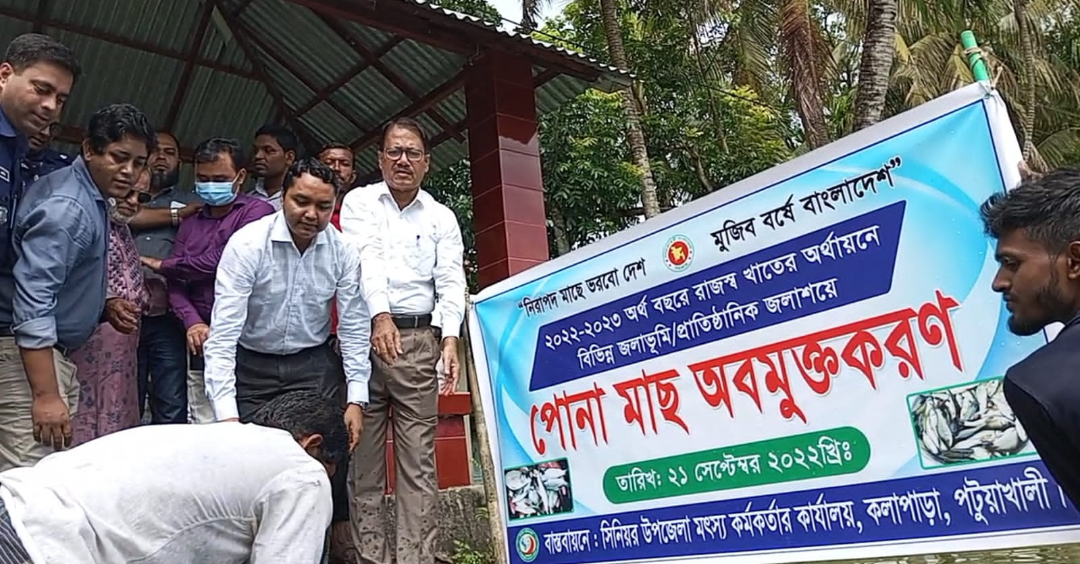 আপন নিউজ অফিস: 'নিরাপদ মাছে ভরবো দেশ, মুজিব বর্ষে বাংলাদেশ' প্রতিবাদ্য নিয়ে কলাপাড়ায় মৎস্য অধিদপ্তরের পোনা মাছ অবমুক্ত করা হয়েছে। আজ বুধবার (২১ সেপ্টেম্বর) সকালে উপজেলা পরিষদের পুকুরে রুই প্রজাতির মাছের পোনা অবমুক্ত করে উপজেলা চেয়ারম্যান বীর মুক্তিযোদ্ধা এস এম রাকিবুল আহসান, ইউএনও শংকর চন্দ্র বৈদ্য এ কার্যক্রম উদ্বোধন করেন।