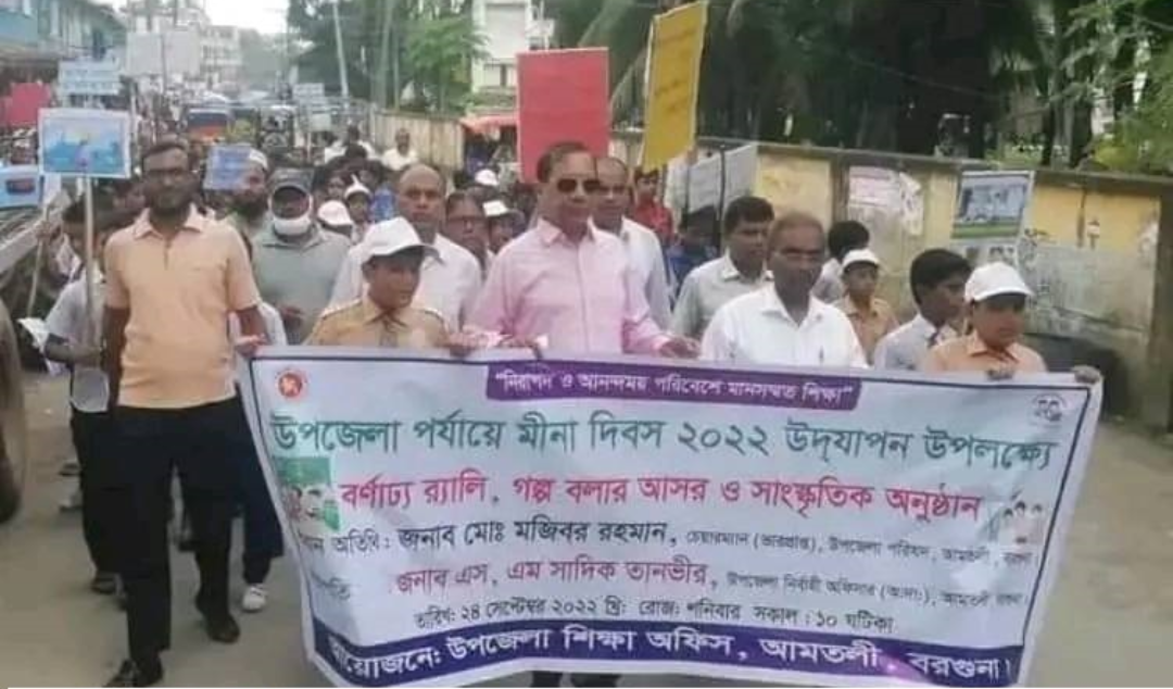 আমতলী প্রতিনিধি: মিনা দিবস উপলক্ষে আমতলী উপজেলা প্রাথমিক শিক্ষা অফিসের উদ্যোগে র্যালী, গল্পবলা ও আলোচনা সভা অনুষ্ঠিত হয়েছে। শনিবার সকালে র্যালী, গল্পবলা ও আলোচনা সভা হয়।