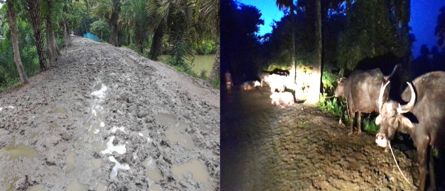 স্থানীয় বাসিন্দারা বলেন, এমনিতেই কাঁচা রাস্তা একটু বৃিষ্ট হলেই হাটু পর্যন্ত কাদায় আটকে যায়। এলাকার প্রভাশালী ব্যক্তিরা রাস্তা দখল করে তাদের পালিত মহিষ, গরু বেধে রাখে। মহিষ গরু চলাচলের কারনে মানুষসহ যানবাহন চলাচলে অনুপযোগী হয়ে পড়েছে। গত বছর এলাকা বাসিদের নিয়ে উপজেলা নির্বাহী কর্মকর্তা বরাবার অভিযোগ করেছিলো। সেই সময় মাত্র একদিন গরু-মহিষ রাস্তার ওপর বাঁধা বন্ধ ছিলো। এরপর আবার গরু মহিষ রাস্তার উপরই বেঁধে রাখছে। ভোটের সময় অনেক জনপ্রতিনিধি এলাকার দুঃখ-দুর্দশা লাঘবে এই রাস্তা পাকা করার প্রতিশ্রæতি দেন। তাদের কাছে একাধিকার বলা সত্বেও রাস্তার উপর মহিষ গরু রাখা বন্ধ ও রাস্তাটি পাকার করনের জন্য কোন পদক্ষেপ নেয়নি।