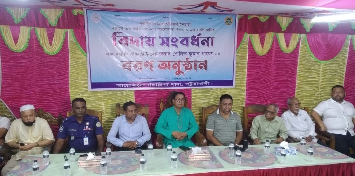 সঞ্জিব দাস, গলাচিপা: পটুয়াখালীর গলাচিপা থানা থেকে বদলি জনিত কারণে সদ্য বিদায়ী অফিসার ইনচার্জ (ওসি) এম আর শওকত আনোয়ার ইসলাম কে বিদায় সংবর্ধনা এবং থানায় সদ্য যোগদান কৃত নবাগত অফিসার ইনচার্জ (ওসি) শোনিত কুমার গায়েণ কে বরণ করা হয়েছে। সোমবার (১০ অক্টোবর) রাত ৯টায় গলাচিপা থানা কমপ্লেক্স চত্বরে থানা পুলিশের আয়োজনে এই সংবর্ধনা দেওয়া হয়। অনুষ্ঠানের শুরুতে পবিত্র কুরআন থেকে তেলওয়াত ও গীতা পাঠ করা হয়। পরে বিদায়ী ওসিকে উপজেলা আওয়ামী লীগ,বনিক সমিতি,ইউনিয়ন পরিষদের চেয়ারম্যান, গলাচিপা প্রেসক্লাব ও গলাচিপা টিভি জার্নালিস্টদের পক্ষ থেকে উপহার ও ফুলেল সংবর্ধনা প্রদান ও নব যোগদান কৃত ওসিকে ফুলেল শুভেচ্ছা দিয়ে বরণ করা হয়। এ সময় গলাচিপা থানা পরিদর্শক (তদন্ত) মোঃ আতিকুল ইসলাম এর সঞ্চালনায় এবং সহকারী পুলিশ সুপার (গলাচিপা সার্কেল) মো.মোর্শেদ তোহা এর সভাপতিত্বে সংবর্ধনায় প্রধান অতিথি হিসেবে বক্তব্য রাখেন উপজেলা পরিষদের চেয়ারম্যান মুহম্মদ সাহিন।