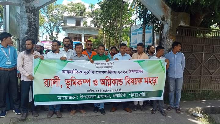 সঞ্জিব দাস, গলাচিপা: "দুর্যোগে আগাম সতর্কবার্তা, সবার জন্য কার্য ব্যবস্থা" এই প্রতিপাদ্যের আলোকে, উপজেলা প্রশাসন ও দুর্যোগ অধিদপ্তর, বৃহস্পতিবার সকাল ৯ টায় উপজেলা প্রশাসন থেকে, বিভিন্ন জনপ্রতিনিধি, সরকারি কর্মকর্তা, সিপিপি সদস্য ও গণমাধ্যম কর্মীদের নিয়ে এক বর্ণাঢ্য র্যালি মিছিল বের করে। র্যালিতে প্রধান অতিথি হিসেবে নেতৃত্ব দেন, উপজেলা চেয়ারম্যান মোঃ শাহিন। র্যালিটি শহরের বিভিন্ন সড়ক প্রদক্ষিণ শেষে ইউএনও কার্যালয়ে, এক আলোচনা সভা অনুষ্ঠিত হয়। সভায় সভাপতিত্ব করেন সহকারী কমিশনার ভূমি ও নির্বাহী ম্যাজিস্ট্রেট মোঃ সাইফুল ইসলাম।