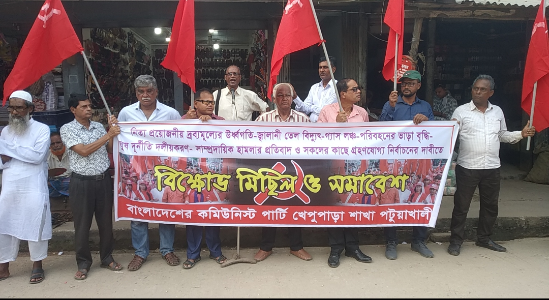 আপন নিউজ অফিস: কলাপাড়ায় বাংলাদেশের কমিউনিষ্টপার্টির বিক্ষোভ মিছিল ও সমাবেশ অনুষ্ঠিত হয়েছে। শনিবার বেলা ১১ টার দিকে পৌরশহরের মনোহরীপট্টিতে কমিউনিষ্টপার্টি খেপুপাড়া শাখার উদ্যোগে এ কর্মসূচির আয়োজন করা হয়। এতে সভাপতিত্ব করেন বাংলাদেশের কমিউনিষ্টপার্টি খেপুপাড়া শাখার সাধারন সম্পাদক নাসির তালুকদার।