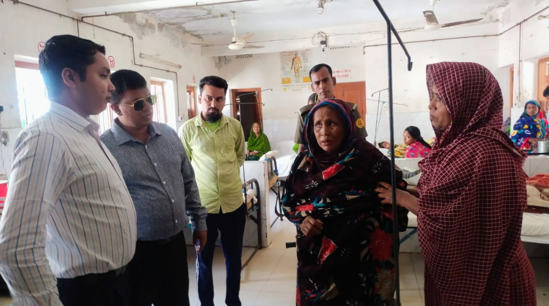 আহত বৃদ্ধ রাশেদা বেগমকে নগদ টাকা দিয়ে সাহায্য করেন ইউএনও।