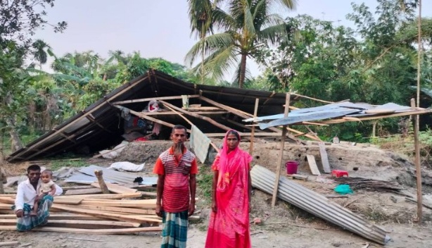 জানা গেছে, উপজেলার সুতাবাড়িয়া গ্রামে দিন মজুর নাসির উদ্দিন পৈত্তিক সম্পত্তি হিসেবে ৬ শতাংশ জমির উপর লক্ষাধিক টাকা খরচ করে ৩ বছর আগে একটি ঘর তোলেন। যাতে ৫ সদস্যের পরিবার বসবাস করত। সদস্যরা হলেন স্ত্রী পারভীন বেগম (৪০) তিন ছেলে সুমন (১৮), সুজন (১১) ও নয়ন (৭)। তার স্ত্রী অন্যের বাড়িতে কাজ করে। দুই জনের কষ্টার্জিত সহায় সম্বল যা ছিল তা খরচ করে ঘরটি তুলেছিলেন। নাসির খা'র স্ত্রী পারভীন বেগম জানালেন, এখন ছেলেদের নিয়ে লিচু গাছের নিছে ছাউনি হীন ডেরা বের দিয়ে কোন মতে বাস করছেন। শীতের মৌসুম আসন্ন, কিভাবে থাকবেন জানেন না। তারা আরো জানান, যেদিন মানুষের বাড়ীতে কাজ না করি সেদিন খেতে পারি না। মোগো কাজ করেই খেতে হয়। দুই ছেলেরে লেখাপড়া করামু কিভাবে জানি না। সরকার এত ত্রাণ দেয় মোরা কিছুই পাই না। ঘর ভাঙ্গার পর জনপ্রতিনিধির কাছে গিয়েছি, তারা কোনো সাড়া দেন নাই।