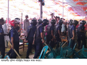 প্রত্যক্ষদর্শী কয়েকজন বলেন, চাওয়া ইউপি চেয়ারম্যান মোঃ আখতারুজ্জামান বাদল খান উসকানীমুলক বক্তব্য দেয়ার পরপরই সভাস্থল উত্তাপ্ত হয়ে উঠে। পরে দুই গ্রুপের মধ্যে ধাওয়া পাল্টা ধাওয়া ও মারধরের ঘটনা ঘটে।