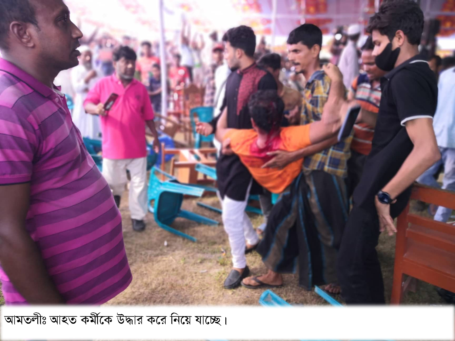 আমতলী প্রতিনিধি: আমতলী উপজেলা আওয়ামীলীগ সম্মেলনে দুই গ্রুপের হামলার তথ্য সংগ্রহ করতে গিয়ে চাওয়া ইউপি চেয়ারম্যান আখতারুজ্জামান বাদল খান ও উপজেলা ছাত্রলীগ সভাপতি মাহবুবুল ইসলামের নেতৃত্বে সভা মঞ্চে কেন্দ্রীয় নেতৃবৃব্দের সামনে বরিবার দুপুরে হামলার ঘটনা ঘটেছে। মোবাইল ও ক্যামেরা লুট করা হয়েছে। এতে ৭ সাংবাদিক আহত হয়েছে।