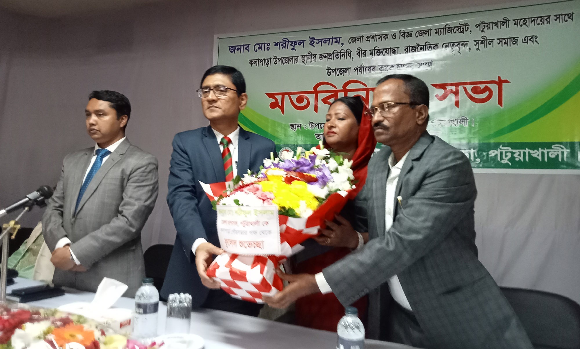 আপন নিউজ অফিস: কলাপাড়ায় জেলা প্রশাসক এর সাথে উপজেলার স্থানীয় জনপ্রতিনিধি, বীর মুক্তিযোদ্ধা, রাজনৈতিক নেতৃবৃন্দ সুশীল সমাজ, সাংবাদিক ও উপজেলা পর্যায়ের কর্মকর্তাদের সাথে মঙ্গলবার দুপুরে উপজেলা পরিষদ হল রুমে মতবিনিময় সভা করেছে। উপজেলা নিবার্হী কর্মকর্তা শংকর চন্দ্র বৈদ্য’র সভাপতিত্বে মতবিনিময় সভা অনুষ্ঠিত হয়েছে। এতে প্রধান অতিথি হিসেবে বক্তব্য রাখেন পটুয়াখালী জেলা প্রশাসক মোঃ শরিফুল ইসলাম।