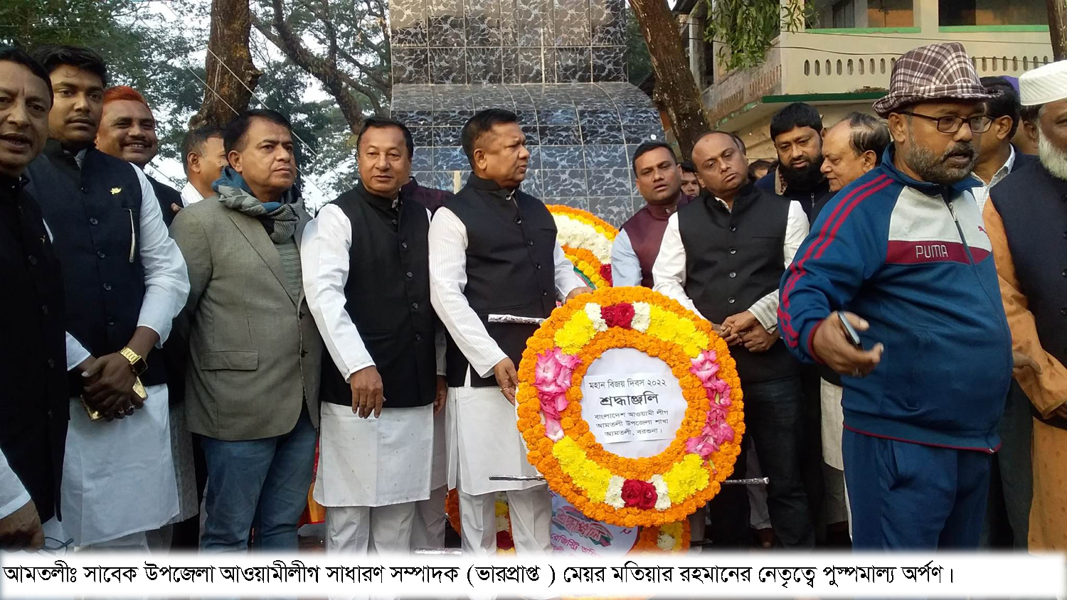 জানাগেছে, শুক্রবার মহান বিজয় দিবসের আমতলী উপজেলা পরিষদ প্রাঙ্গণে শহীদ স্মৃতি স্তম্ভে উপজেলা আওয়ামীলীগ সভাপতি আলহাজ¦ গোলাম সরোয়ার ফোরকান ও সাধারণ সম্পাদক জিএম ওসমানী হাসানের নেতৃত্বে পুস্পস্তবক অর্পণ করে। এরপর সাবেক উপজেলা আওয়ামীলীগ সাধারণ সম্পাদক (ভারপ্রাপ্ত) পৌর মেয়র মতিয়ার রহমানের নেতৃত্বে পুস্পস্তবক অর্পণ করা হয়। পুস্পস্তবক অর্পণ শেষে উপজেলা আওয়ামীলীগ সভাপতি গোলাম সরোয়ার ফোরকানের নেতৃত্ব নেতাকর্মীরা উপজেলা পরিষদ প্রাঙ্গণ থেকে বিজয় মিছিল শুরু করে আওয়ামীলীগ অফিস প্রাঙ্গণে শেষ করে। একই সময়ে সাবেক উপজেলা আওয়ামীলীগ সাধারণ সম্পাদক মতিয়ার রহমানের নেতৃত্বে একাংশের নেতাকর্মীরা উপজেলা পরিষদ সামনে থেকে বিজয় মিছিল শুরু করে। ওই মিছিল পৌরসভা প্রাঙ্গণ বঙ্গবন্ধু শেখ মুজিবুর রহমানের ম্যুরালের পাদদেশে শেষ করে। দুই গ্রুপ আলাদা আলাদা ভাবে পুস্পস্তবক অর্পণ ও বিজয় মিছিল করায় সাধারণ মানুষের মাঝে নানা প্রশ্নের জন্ম দিয়েছে। সাধারণ মানুষের প্রশ্ন প্রধানমন্ত্রী শেখ হাসিনার নির্দেশে কেন্দ্রিয় কমিটি ঘোষিত উপজেলা আওয়ামীলীগ সঠিক না সাবেক উপজেলা আওয়ামীলীগ সঠিক।