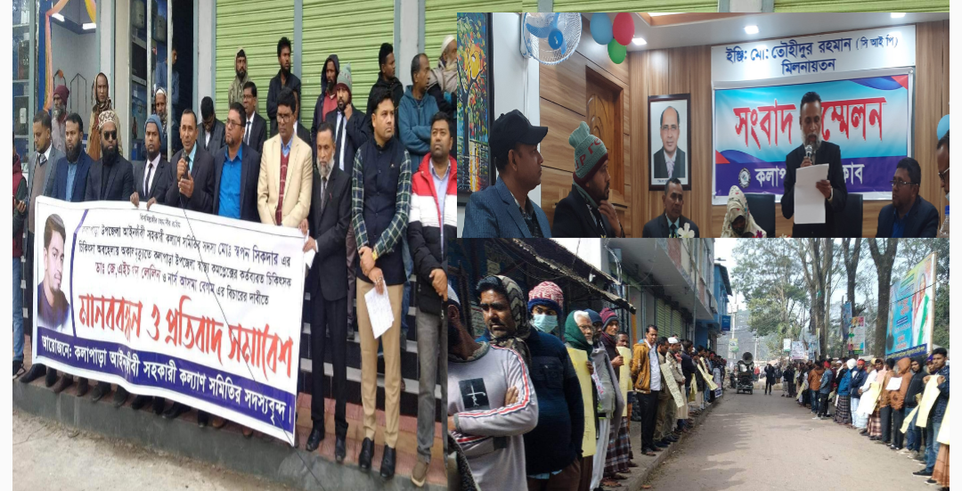 সোমবার (৯ জানুয়ারি) কলাপাড়া প্রেসক্লাবের সামনে এ মানববন্ধন ও সমাবেশ অনুষ্ঠিত হয়। এতে বক্তব্য রাখেন কলাপাড়া চৌকি আদালত আইনজীবী কল্যাণ সমিতির সভাপতি ও জেলা বারের প্রতিনিধি অ্যাডভোকেট খন্দকার নাসির উদ্দিন, অ্যাডভোকেট সাইদুর রহমান সাঈদ, অ্যাডভোকেট নাসির উদ্দিন মাহমুদ, অ্যাডভোকেট সুমন সহ আইনজীবী সহকারীগণ ও নিহতের স্বজনরা।