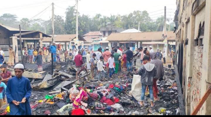 স্থানীয় সূত্রে জানা যায়, হঠাৎ বিকট শব্দ হওয়ার কারণে লোকজনের ঘুম ভেঙে যায়। তারা এসে দেখেন ভয়াবহ আগুনের লেলিহান শিখা। উপকূলীয় চরাঞ্চল হওয়ার কারণে কাছাকাছি কোনো ফায়ার সার্ভিস ও সিভিল ডিফেন্স স্টেশন নেই। তাই স্থানীয় পর্যায়ে আগুন নেভানোর চেষ্টা করেও শেষ রক্ষা হয়নি। এতে খোকন মুন্সির গার্মেন্টস ও কসমেটিকের দোকান, ফজলু হাওলাদারের ঢেউটিনের দোকান এবং মোজাম্মেল সরদারের জাল-সুতার দোকান পুড়ে ছাই হয়ে যায়।