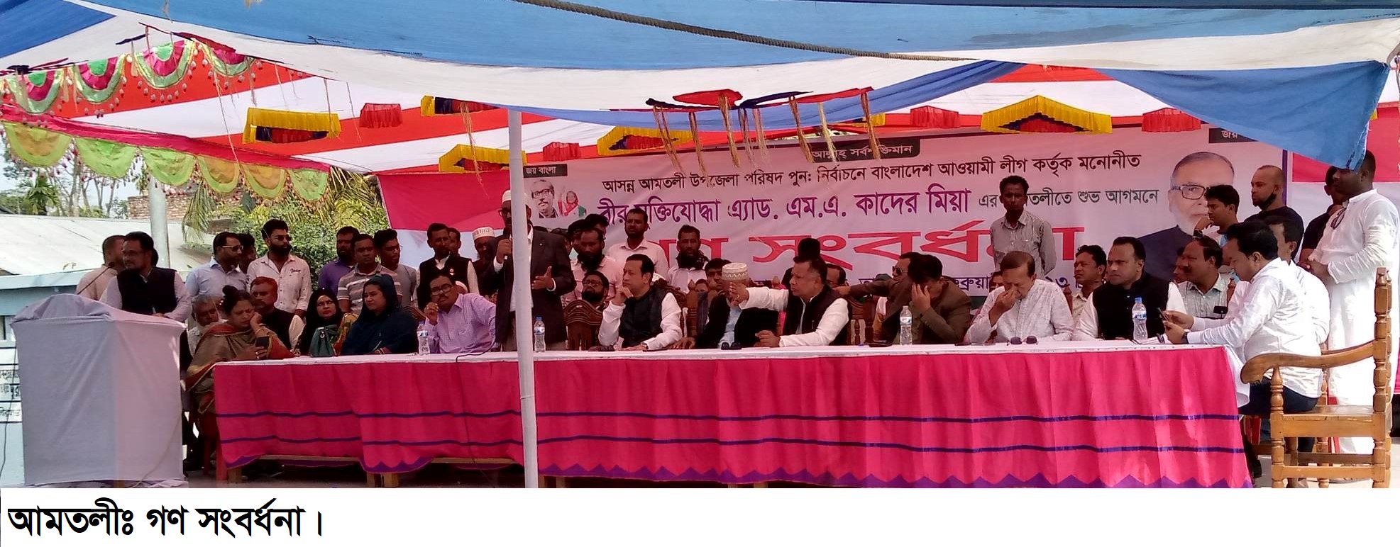 জানাগেছে, আমতলী উপজেলা পরিষদ চেয়ারম্যান পদে পুনঃ নির্বাচন আগামী ১৬ মার্চ। এ নির্বাচনে প্রধানমন্ত্রী শেখ হাসিনা উপজেলা আওয়ামীলীগ সাবেক ভারপ্রাপ্ত সভাপতি অ্যাড. এমএ কাদের মিয়াকে মনোনয়ন দিয়েছেন। প্রধানমন্ত্রী তাকে মনোনয়ন দেয়ায় শনিবার গণ সংবর্ধনা দেয়া হয়েছে। আমতলী পৌর মেয়র মোঃ মতিয়ার রহমানের সভাপতিত্বে গণ সংবর্ধনা সভায় বক্তব্য রাখেন বাউফল পৌর মেয়র মোঃ জিয়াউল হক জুয়েল, আমতলী উপজেলা পরিষদ চেয়ারম্যান (ভারপ্রাপ্ত) মোঃ মজিবুর রহমান, সাবেক কেন্দ্রিয় ছাত্রলীগ সহ-সভাপতি মোঃ মিজানুর রহমান মিজান, উপজেলা আওয়ামীলীগ সাবেক সহ-সভাপতি বীর মুক্তিযোদ্ধা আলহাজ্ব নুরুল ইসলাম মৃধা, ইউপি চেয়ারম্যান মোঃ মোতাহার উদ্দিন মৃধা, বোরহান উদ্দিন মাসুম তালুকদার, আখতারুজ্জামান বাদল খাঁন, সোহেলী পারভীন মালা, মোঃ রফিকুল ইসলাম রিপন, অ্যাড. এইচ এম মনিরুল ইসলাম মনি ও সাবেক ইউপি চেয়ারম্যান মোঃ শহীদুল ইসলাম মৃধা প্রমুখ।