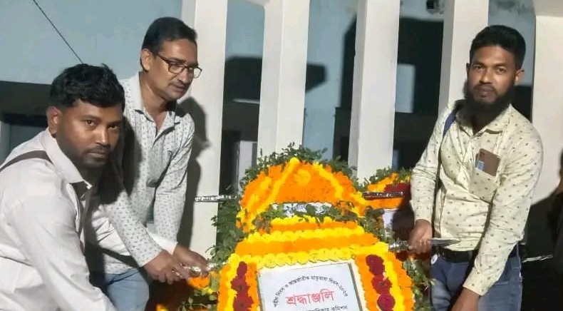 ২১ ফেব্রুয়ারী প্রভাতে শহীদ মিনারে পুষ্পস্তবক অর্পণ করা হয়।