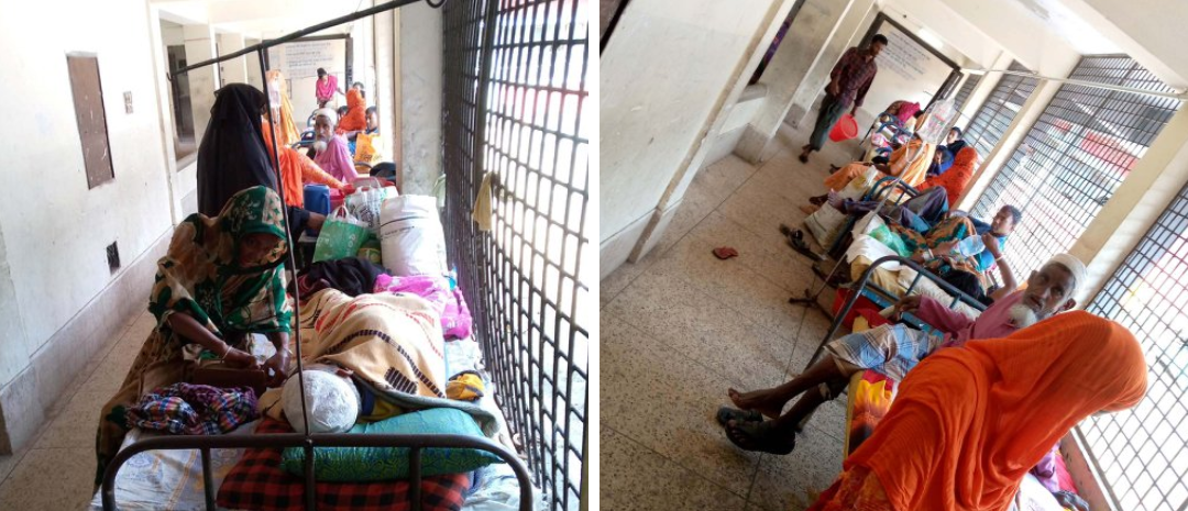 সোমবার উপজেলা স্বাস্থ্য কমপ্লেক্স ঘুরে দেখাগেছে, স্বাস্থ্য কমপ্লেক্সে বারান্দার বেডে রোগীরা চিকিৎসা নিচ্ছে। হাসপাতালে বেডে ৬ জন এবং বারান্দায় ৯ জন রোগীর চিকিৎসা চলছে।