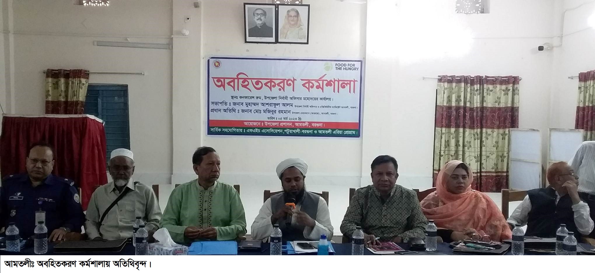 আমতলী প্রতিনিধিঃ আমতলী উপজেলা প্রশাসনের উদ্যোগে এফএইচ এ্যাসোসিয়েশনের সহযোগীতায় অবহিতকরণ কর্মশালা অনুষ্ঠিত হয়েছে। রবিবার উপজেলা পরিষদ মিলনায়তনে এ কর্মশালা অনুষ্ঠিত হয়।