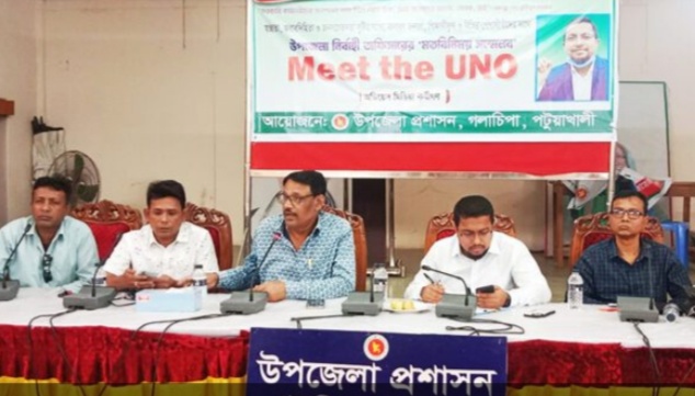 সঞ্জিব দাস,গলাচিপাঃ গলাচিপা উপজেলা নির্বাহী অফিসার মোঃ মহিউদ্দিন আল হেলাল এর সাথে গলাচিপা উপজেলা পরিষদ হলরুমে সোমবার বেলা ১১ টায় উপজেলার সকল গণমাধ্যম কর্মীদের সাথে সৌজন্য সাক্ষাৎ ও মত বিনিময় সভা অনুষ্ঠিত হয়। মতবিনিময় সভায় সকল সাংবাদ কর্মীদের পরিচয় শেষে, নবনিযুক্ত উপজেলা নির্বাহী অফিসার সরকারের বিভিন্ন উন্নয়ন কাজের বাস্তবায়ন, আইনশৃঙ্খলা, শিক্ষার উন্নয়ন, পরিবেশ উন্নয়ন, স্বাস্থ্য, কৃষি সহ স্থানীয় পর্যায়ে পরিবহন, পৌর সদরের প্রধান প্রধান সড়কের শৃঙ্খলা বিষয়ে কাজ করার কথা বলেন।