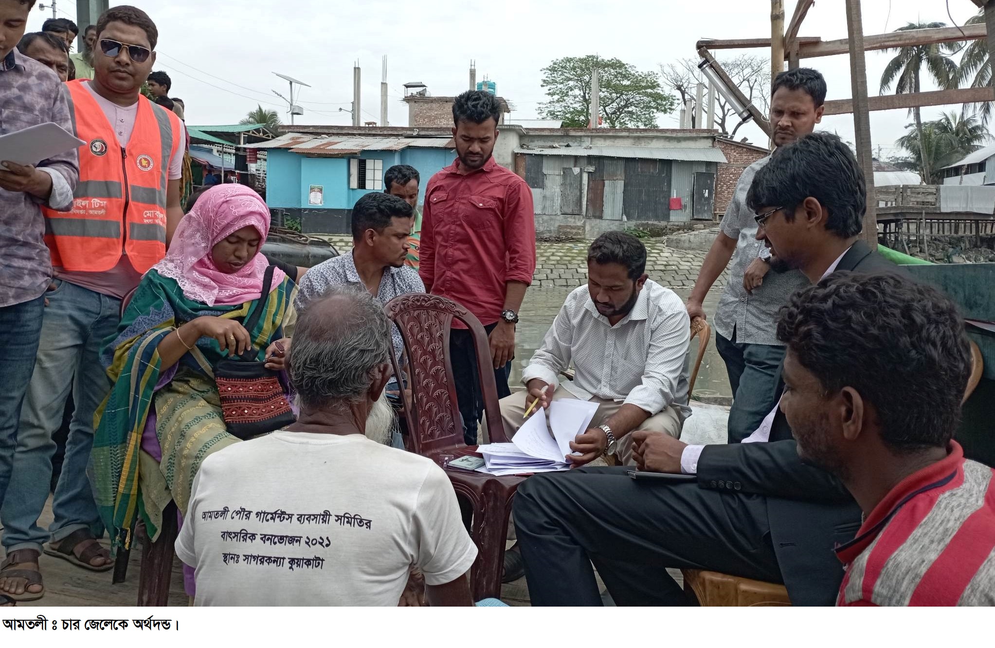 আমতলী ভ্রাম্যমান আদালতের নির্বাহী ম্যাজিস্ট্রেট মোঃ জাহিদুর রহমান এ অর্থদন্ডের আদেশ দিয়েছেন। একই সাথে জব্দকৃত দুইটি বেহেন্তি জাল ও সাত হাজার মিচার অবৈধ জাল পুড়িয়ে ফেলা এবং একটি ইঞ্জিনচালিত ট্রলার ১২ হাজার টাকায় উন্মুক্ত নিলামে বিক্রি করা হয়েছে। ঘটনা ঘটেছে আমতলী ল ঘাট এলাকায় রবিবার দুপুরে।
